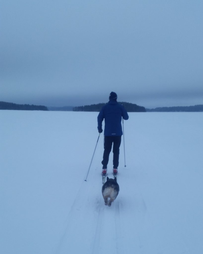 Tuo hurja alamäki oli yksi syy, miksi siirryin pariksi vuodeksi juoksuradalle höylättyä 400 metrin Muumilatua kiertämään. Kun taas löysin itseni puoli persusta hangen sisällä, sukset sojoittaen tähtikirkkaalle taivaalle, päätös oli helppo tehdä. Toinen syy oli voiteluvaikeudet: säätilojen vaihtelu harjun ja vesistöjen maisemassa oli vilkasta. Eilisen liisteri oli pakko liuottaa pois ettei suksen pohja keräisi kymmenen sentin lumikerrosta kylmenneessä kelissä. Ilman kunnon pitoa ylämäet, joita ladulla riitti, olivat tuskaisia nousta lipsuvilla suksilla käsivarret täristen ponnistuksesta ja hiihtopusakan selkä kastuen läpimäräksi hiestä.