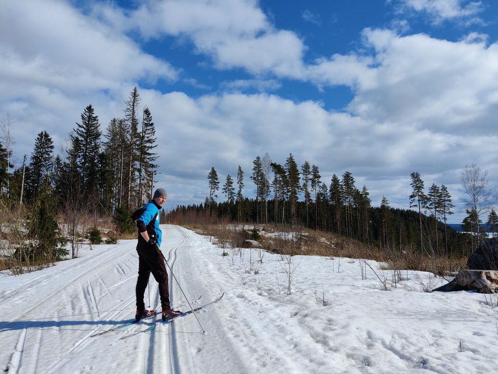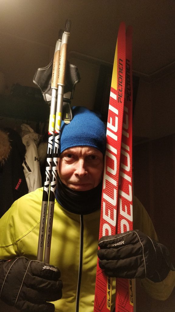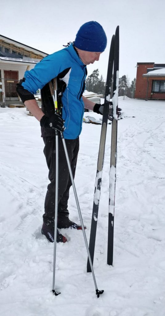 Lehdissä ja ystävien Facebook-postauksissa kehuttiin kuorossa karvapohjia. Sanoin, että nuo kun hankit, niin se hiihtohurmio tulee kaupan päälle. Lumisen talven tyhjentämässä Järvisen liikkeessä myytiin vain ”ei oota”: ei ollut vaimoni kokoa monoja eikä suksia. Kolme viikkoa menisi ennen kuin uusi erä Peltosen tehtaalta saapuisi. Harmitti lähteä tyhjin käsin kotiin. Niinpä tulin kysäisseeksi, olisiko heillä sattumalta minun kokoani. Yksi pari löytyi: jäykkyys ja pituus olivat ideaalit. Kaupat syntyivät vaimoni katsellessa yrmeänä vieressä.