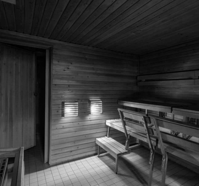 Tapiolan Menninkäisentien Kolmirinteen taloissa ei ollut saunatiloja eikä niitä ollut edes tien toisen puolen ketjutaloissa. Moni noissa ”kanakopeissa” asuva perhe päätyi tarpeettoman suuren varastotilan saunaksi remontoimaan, kuten ystäväni Matin rivitalossa tehtiin. Läheisessä Mäntytornissa oli sauna samoin Poutapolku kolmosessa. Kapasiteettia oli saunahaluisiin tapiolalaisiin nähden naurettavan vähän: oman saunavuoron saaminen oli siksi käytännössä mahdotonta. Uimahallissa oli kaksi saunaa, mutta ne olivat vain pikaista lämmittelyä varten. Ruuhka-aikoina oli levotonta ja ovi kävi tiuhaan.