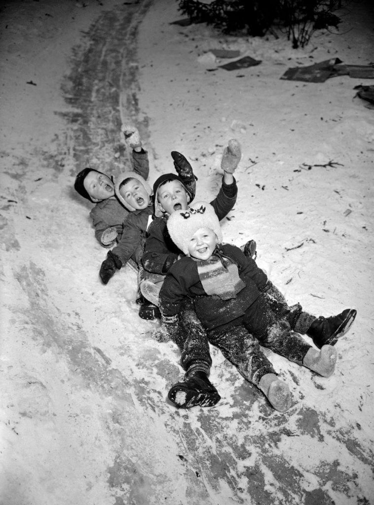 Talvisin kunnallistekninen huolto vallitti ja jäädytti Tapiolan lämpövoimalan viereisen mäen kaikkien pulkkaikäisten suureksi riemuksi. Jos vallihaudat oli potentiaalisesti vaarallinen leikkipaikka, niin jäämäki oli sitä todella. Toistasataa metriä pitkä, ensin oikealle ja sitten vasemmalle jyrkästi kääntävä mäki houkutteli talvi-iltoina paikalle kymmeniä eri-ikäisiä lapsia pulkkineen ja kelkkoineen. Ainuttakaan aikuista ei villiä menoa ollut vahtimassa. Oli kyllä taivaan ihme ettei tuossa mäessä kukaan päässyt hengestään. Aluksi vauhdit olivat melko maltilliset johtuen liikuntavälineiden materiaalista; vaneriset pulkat ja puiset kelkat eivät päässeet aivan hurjiin vauhteihin. Monet laskivat mäkeä vain pahvinpala takapuolen alla. Nuoskakelillä luisto oli lähes olematonta.