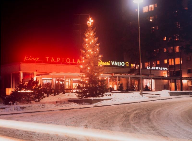 Mäntyviita gave me my first job. Tapion Honka sports club’s swimming division holds a sale of Christmas trees on the empty lot, opposite Elanto’s bar, during the Christmas week. I’m a little shy about starting a sales job, since I haven’t tried anything like that before. A couple of swimmer friends give me encouragement. I watch the salesmanship of the big guys, and it doesn’t seem too difficult. We agree that on Friday evening I can manage the sales alone. The older guys happen to have other things to do then. As we are tying the fir trees to the racks in case of thieves, one of the guys beckons me over.