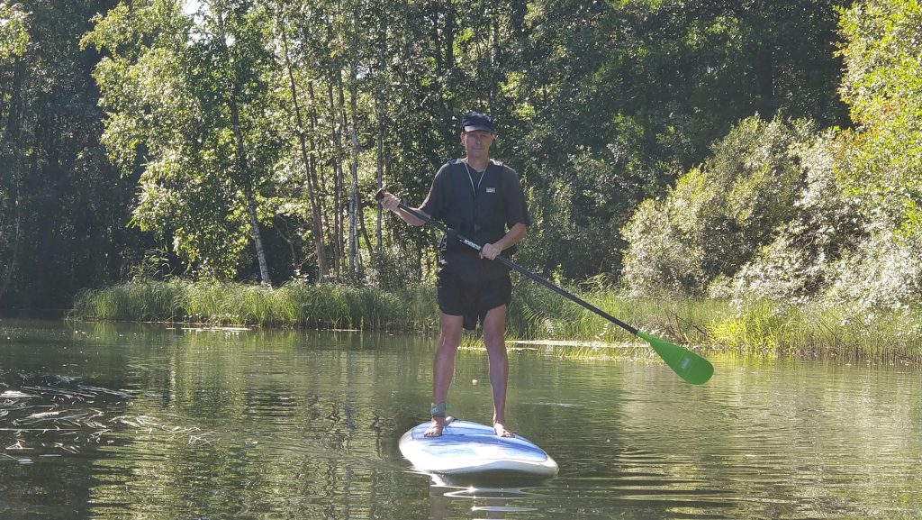 Järvi on tyyni. Untuvankevyt tuulenvire saa sokaisevan kirkkaat auringon säteet välkehtimään väreilevässä vedessä. Vaikka syvyyttä on jo ainakin pari metriä, järven pohjan kivet ja kasvillisuus erottuvat selvästi. Iso hauki livahtaa kaislikon suojaan. Olen haltioissani. Enkä muista olevani alle metrin levyisen kevyen komposiittilaudan päällä. Nostan hieman vasenta jalkaani siirtääkseni sen parempaan asentoon.